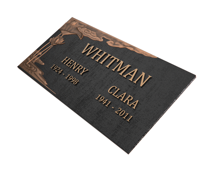 Refined bronze plaque with a lotus design and a soft leather background, symbolizing peace, unity, and eternal love.