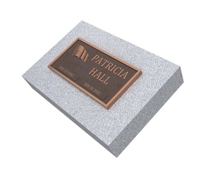 This bronze plaque features a raised American flag design on a classic leather-textured background, framed with a refined border. Mounted on a granite base, it symbolizes patriotism, honor, and lasting remembrance.